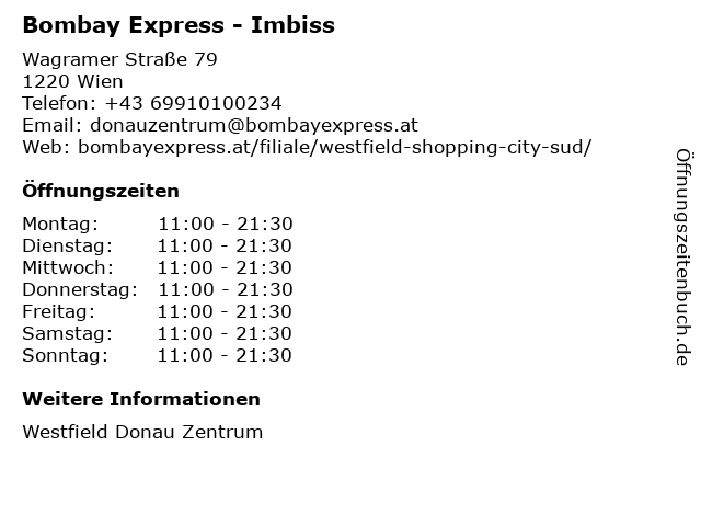 | Öffnungszeiten Bombay Express - Imbiss in Wien anzeigen | |