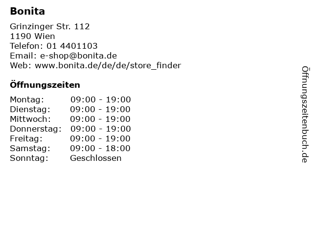 | Öffnungszeiten Bonita in Wien anzeigen | |