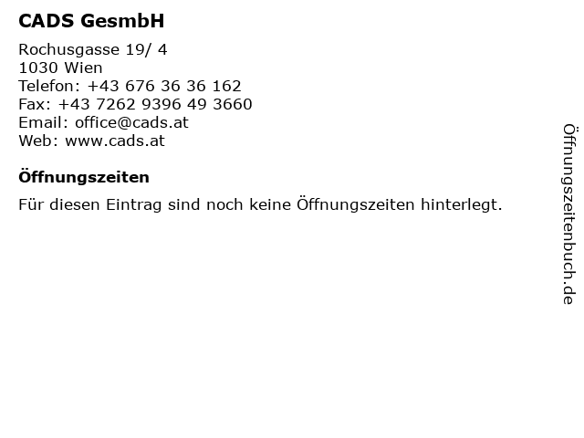 | Öffnungszeiten CADS GesmbH in Wien anzeigen | |