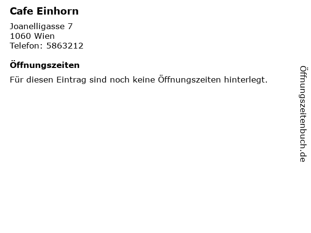 | Öffnungszeiten Cafe Einhorn in Wien anzeigen | |