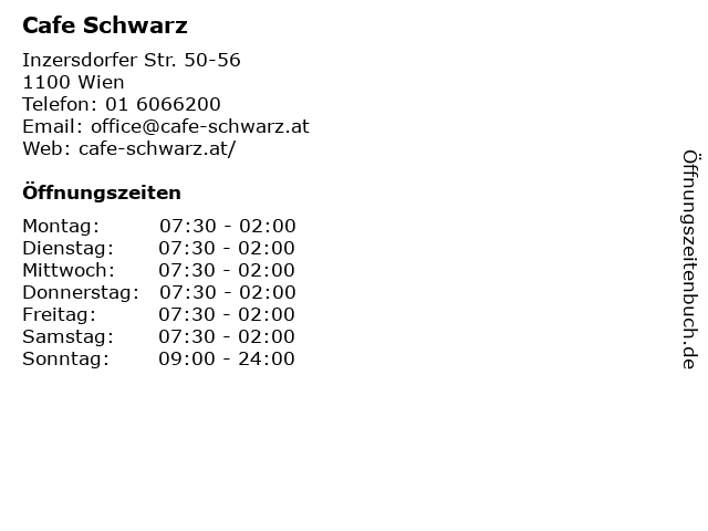 | Öffnungszeiten Cafe Schwarz in Wien anzeigen | |