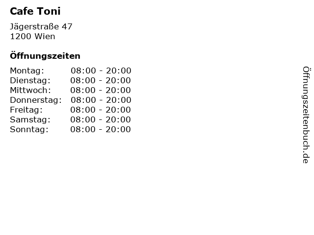 | Öffnungszeiten Cafe Toni in Wien anzeigen | |