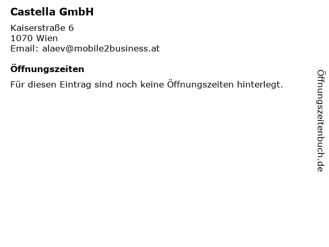 | Öffnungszeiten Castella GmbH in Wien anzeigen | |