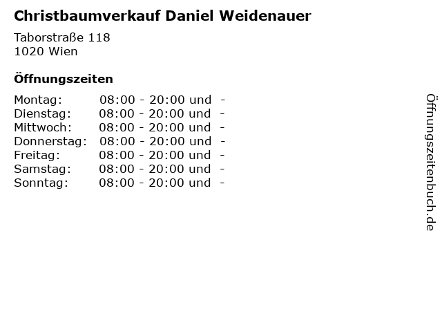 | Öffnungszeiten Christbaumverkauf Daniel Weidenauer in Wien anzeigen | |
