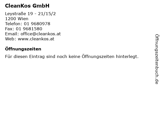 | Öffnungszeiten CleanKos GmbH in Wien anzeigen | |