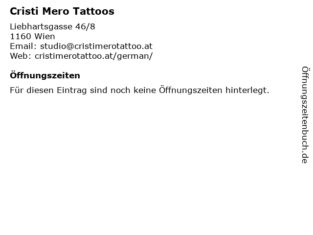 | Öffnungszeiten Cristi Mero Tattoos in Wien anzeigen | |