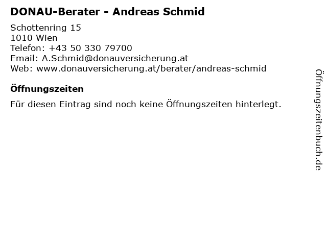 | Öffnungszeiten DONAU-Berater - Andreas Schmid in Wien anzeigen | |