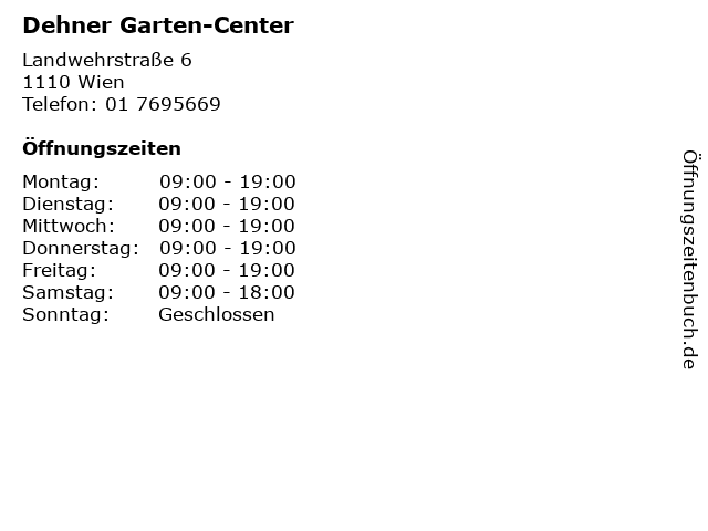 | Öffnungszeiten Dehner Garten-Center in Wien anzeigen | |