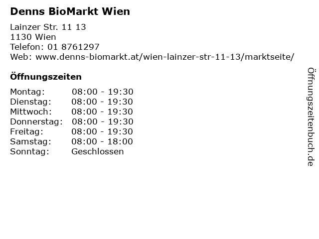 | Öffnungszeiten Denns BioMarkt Wien in Wien anzeigen | |