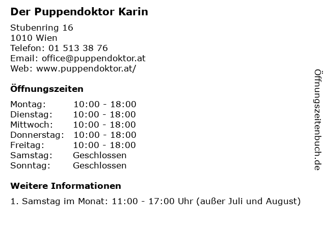 | Öffnungszeiten Der Puppendoktor Karin in Wien anzeigen | |