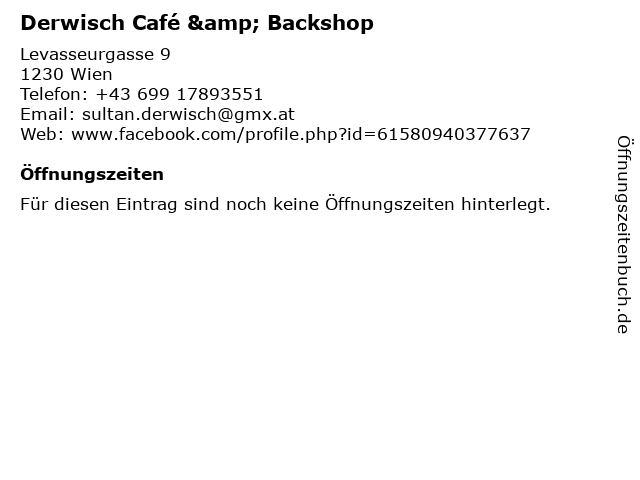 | Öffnungszeiten Derwisch Café & Backshop in Wien anzeigen | |