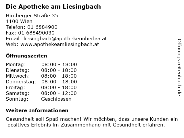 | Öffnungszeiten Die Apotheke am Liesingbach in Wien anzeigen | |