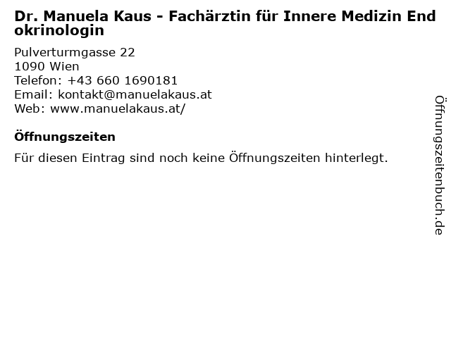 | Dr. Manuela Kaus - Fachärztin für Innere Medizin Endokrinologin anrufen | |