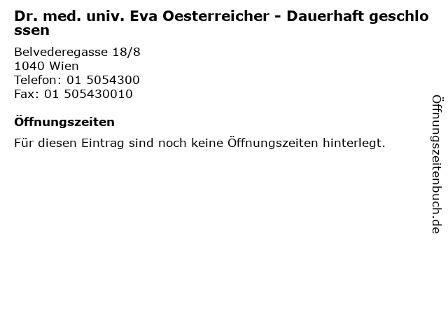 | Dr. med. univ. Eva Oesterreicher - Dauerhaft geschlossen anrufen | |