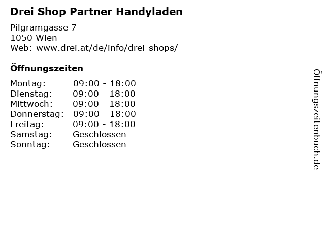 | Öffnungszeiten Drei Shop Partner Handyladen in Wien anzeigen | |