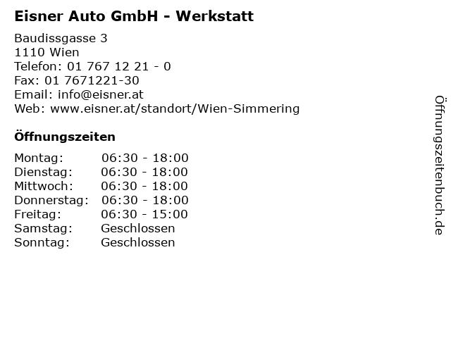 | Öffnungszeiten Eisner Auto GmbH - Werkstatt in Wien anzeigen | |