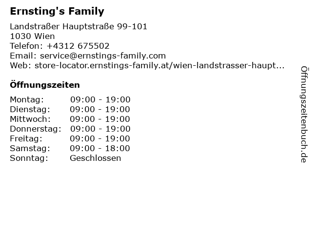 | Öffnungszeiten Ernsting's Family in Wien anzeigen | |