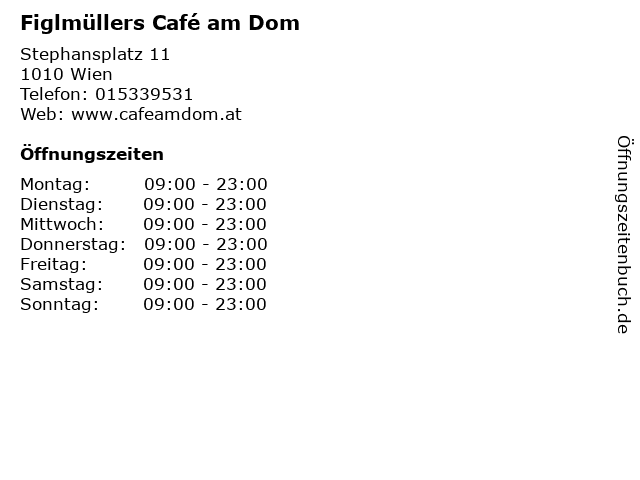 | Öffnungszeiten Figlmüllers Café am Dom in Wien anzeigen | |