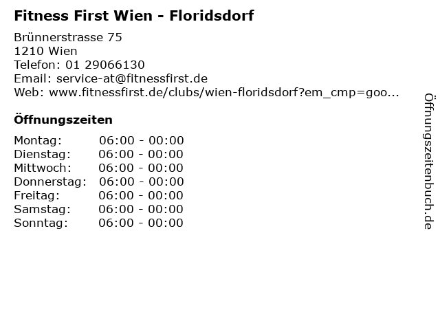| Öffnungszeiten Fitness First Wien - Floridsdorf in Wien anzeigen | |