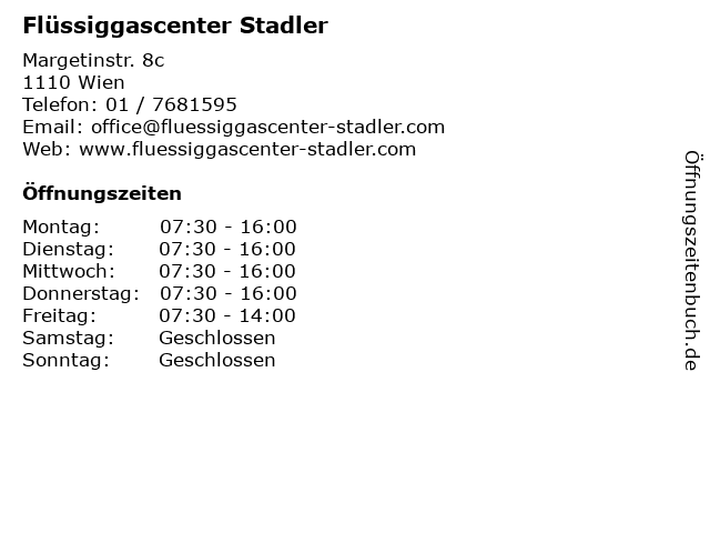 | Öffnungszeiten Flüssiggascenter Stadler in Wien anzeigen | |