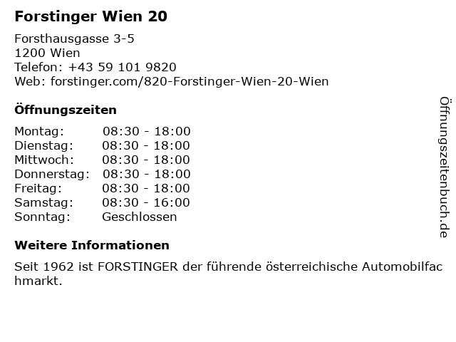 Öffnungszeiten Forstinger Wien 20 in Wien anzeigen | |