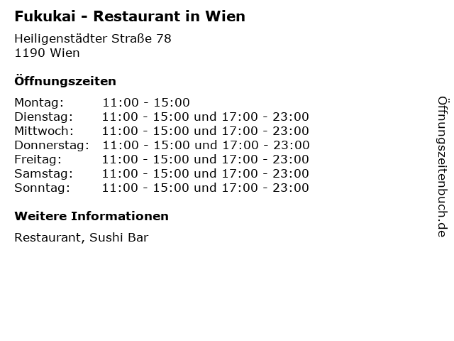 | Öffnungszeiten Fukukai - Restaurant in Wien in Wien anzeigen | |