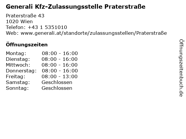 Branchen & Suchbegriffe zu Generali Kfz-Zulassungsstelle Praterstraße:generali, kfz, praterstraße, zulassungsstelle |