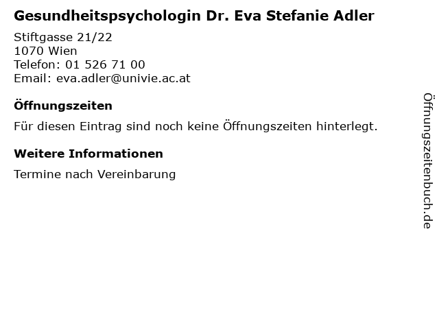 | Gesundheitspsychologin Dr. Eva Stefanie Adler anrufen | |