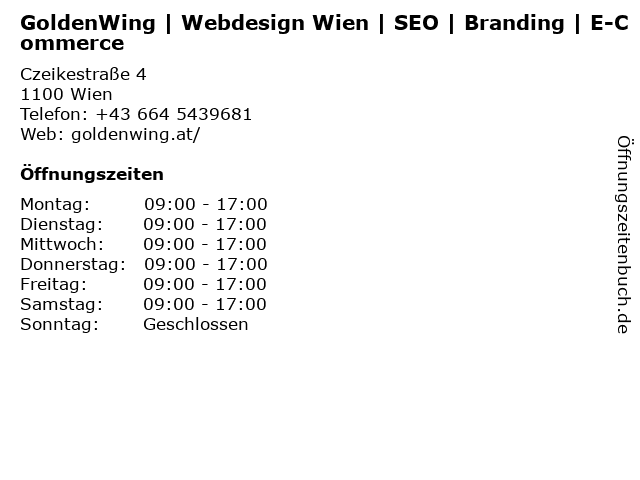 Öffnungszeiten GoldenWing | Webdesign Wien | SEO | Branding | E-Commerce
