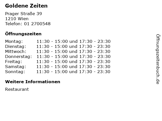 | Öffnungszeiten Goldene Zeiten in Wien anzeigen | |
