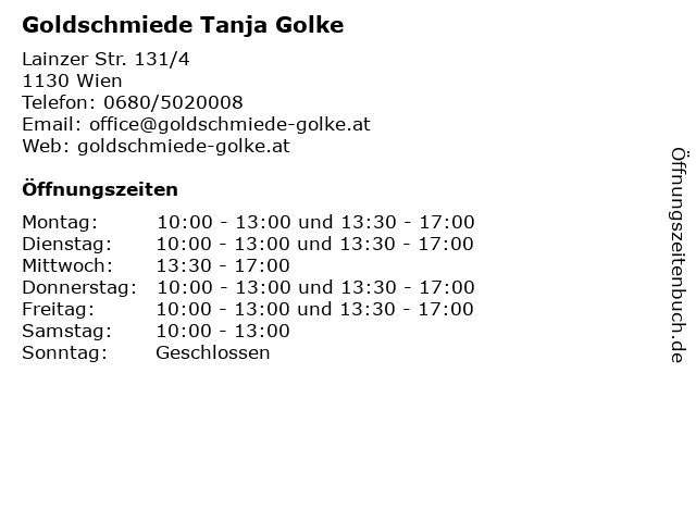 | Öffnungszeiten Goldschmiede Tanja Golke in Wien anzeigen | |