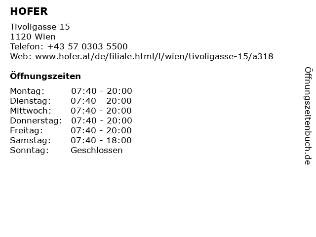 HOFER in Wien | Telefonnummer, Öffnungszeiten und Adresse