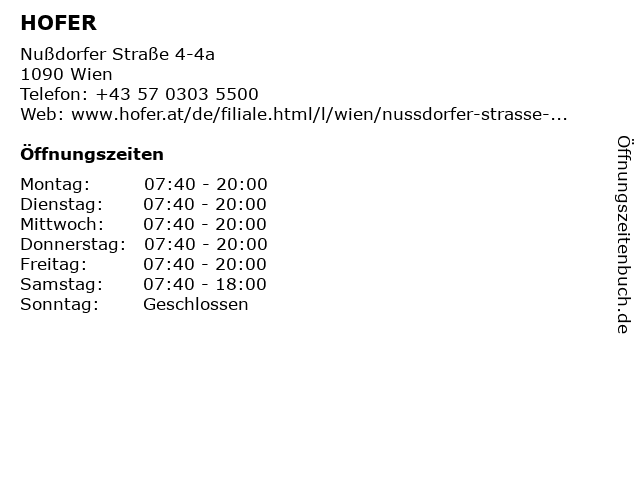 HOFER in Wien | Telefonnummer, Öffnungszeiten und Adresse