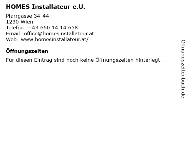 | Öffnungszeiten HOMES Installateur e.U. in Wien anzeigen | |