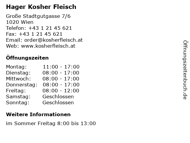 | Öffnungszeiten Hager Kosher Fleisch in Wien anzeigen | |