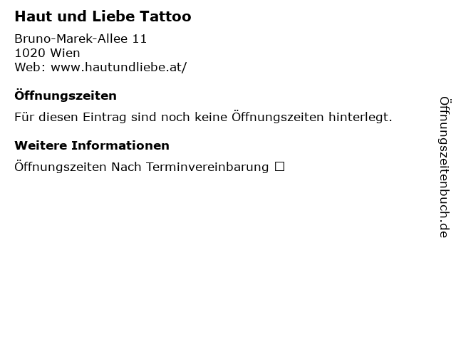 | Öffnungszeiten Haut und Liebe Tattoo in Wien anzeigen | |