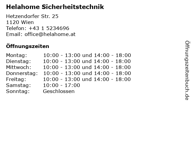 | Öffnungszeiten Helahome Sicherheitstechnik in Wien anzeigen | |