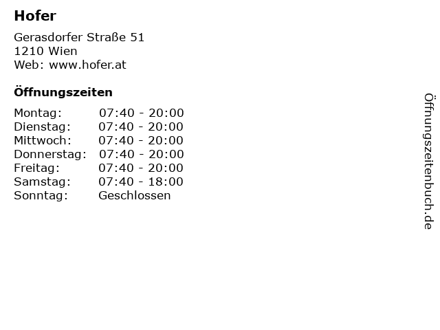 | Öffnungszeiten Hofer in Wien anzeigen | |