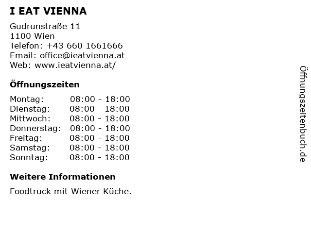 | Öffnungszeiten I EAT VIENNA in Wien anzeigen | |