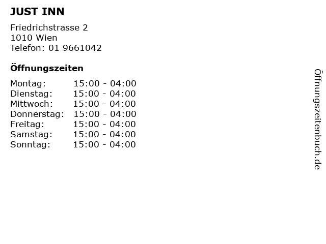 | Öffnungszeiten JUST INN in Wien anzeigen | |
