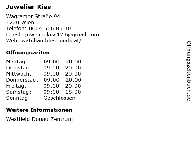 | Öffnungszeiten Juwelier Kiss in Wien anzeigen | |