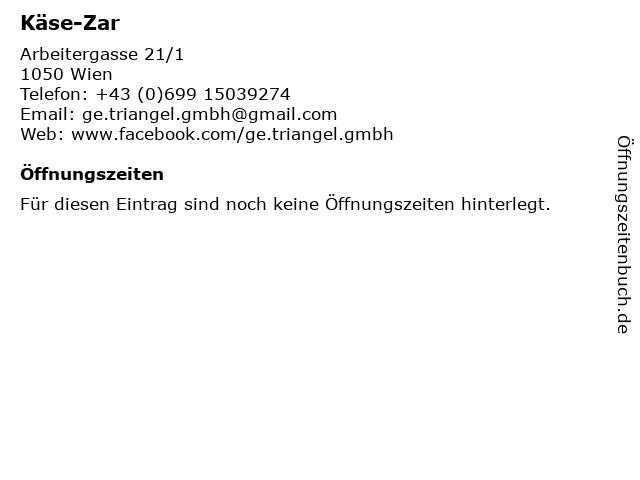 | Öffnungszeiten Käse-Zar in Wien anzeigen | |