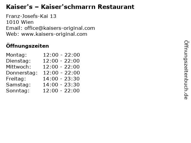 Öffnungszeiten Kaiser's – Kaiser'schmarrn Restaurant in Wien anzeigen