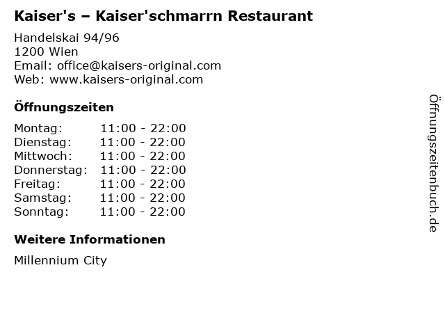 Öffnungszeiten Kaiser's – Kaiser'schmarrn Restaurant in Wien anzeigen | |