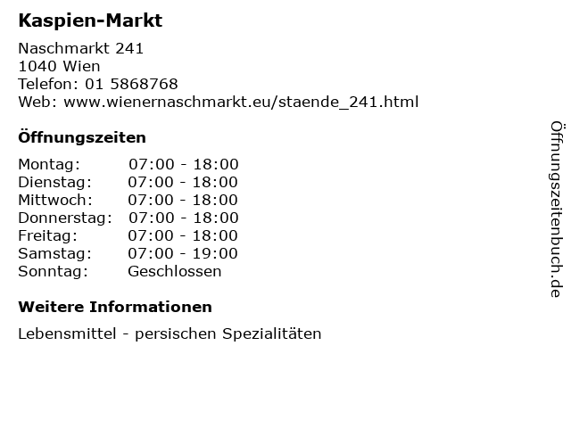 | Öffnungszeiten Kaspien-Markt in Wien anzeigen | |