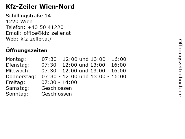 | Öffnungszeiten Kfz-Zeiler Wien-Nord in Wien anzeigen | |