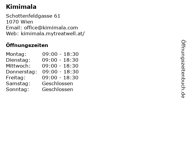 | Öffnungszeiten Kimimala in Wien anzeigen | |