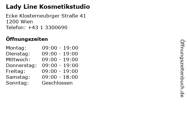 | Öffnungszeiten Lady Line Kosmetikstudio in Wien anzeigen | |