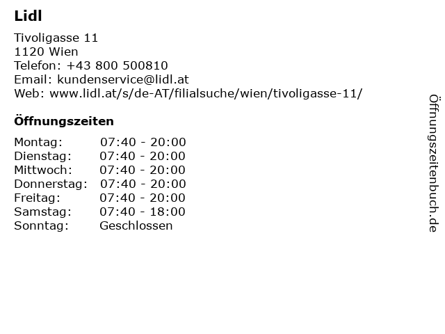 Lidl in Wien | Telefonnummer, Öffnungszeiten und Adresse