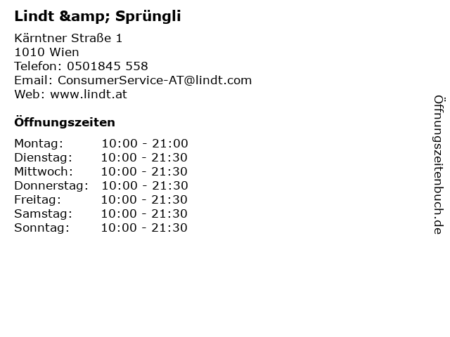 | Öffnungszeiten Lindt & Sprüngli in Wien anzeigen | |